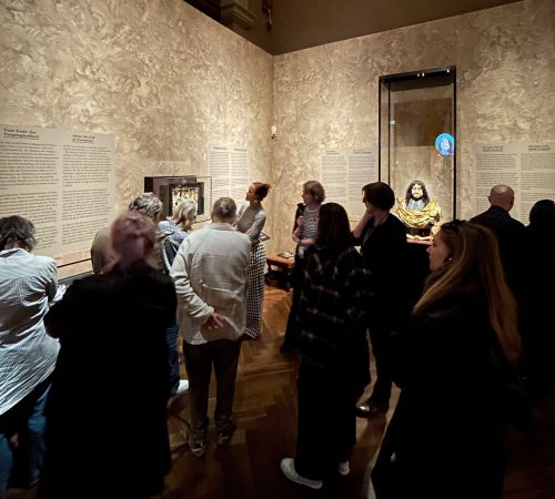 Die beiden Restauratorinnen Mag. Johanna Diehl und Dipl.-Rest. Barbara Goldmann, die in diesem Fall auch als Kuratorinnen tätig waren, führten die Mitglieder des ÖRV durch die Ausstellung und vermittelten spannende Einblicke in die Restaurierungs- und Forschungstätigkeiten.