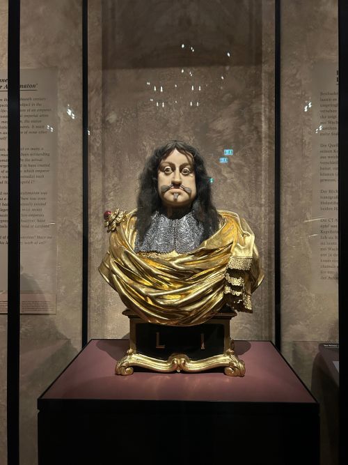 Zwei illusionistisch gestaltete Büsten von Kaiser Leopold I. und Ferdinand III., die im Zuge der Forschungsarbeiten für diese Ausstellung erstmals Daniel Neuberger zugeschrieben werden konnten. Besonders bemerkenswert: Es gibt Hinweise darauf, dass die Büste Leopolds I. möglicherweise Teil eines mechanischen „Kaiserautomaten“ war – eine spannende Entdeckung, die Johanna Diehl im Rahmen ihrer Untersuchungen machte.